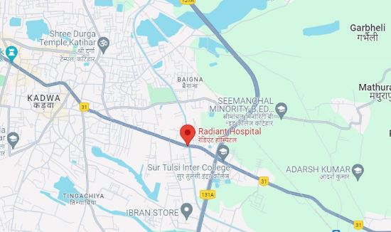 Radiant Hospital at Katihar has been launched by renowned Surgeon Dr Shamim Ali who has been serving the people of this area for the last 20 years. He has performed more than 15,000 general and laparoscopic surgeries with excellent outcomes. Katihar was severely deficient in quality healthcare despite the presence of several good doctors who are practicing through their clinics and small nursing home. The need for a good quality multi super specialty hospital was felt for a long time. Radiant hospital which was setup in the year 2019 has fullfilled this need. The hospital is on the panel of all the major insurance companies and offers its services to Ayushman card holders also. The hospital is housed in a huge campus spread over 3 acres spanning over 50,000 square feet of space. The hospital is located just 400 meters from Katihar bypass on NH-131A and 4 kms from the Katihar Railway Station.